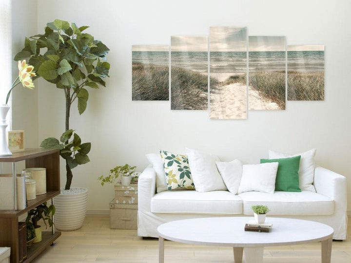 The picture on acrylic glass "Acrylic Print - Quiet Beach" is a great idea to decor modern interiors. Perfectly complements other original solutions and is an interesting alternative to traditional wall decorations, such as glass panels or decorative kitchen glass. Printing on acrylic glass attracts the eyes thanks to the effect of depth and it looks beautiful in representative premises. Thanks to the use of modern printing technology and high quality dyes, it is characterized by a beautiful gloss. Acrylic glass pictures are light, easy to clean and resistant to moisture, so they work great in the living room, bedroom, bathroom and even on the terrace. Acrylic glass with graphics thanks to its high level of light transmission gains an amazing 3d effect. Acrylic prints keep all the advantages of classical glass printing, without its weaknesses - high weight and delicacy. They are manufactured from polymethyl methacrylate highly valued by interior designers. A polymer commonly called acrylic or plexiglass is (like glass) colorless and rigid. Just as glass does not discolour under the influence of UV radiation and has a very high (over 90%) light transmission. Unlike glass, it is half lighter and much stronger. It is more flexible and hard to crush. The print is applied under the acril glass surface on an adhesive foil.This technique ensures photographic accuracy and glowing colors. The plexiglass picture gives three-dimensional depth and gentle shine.