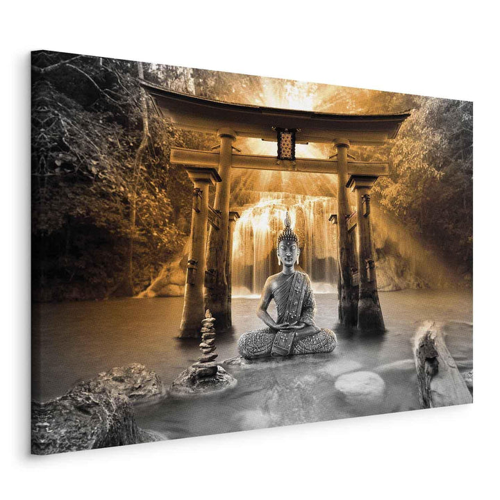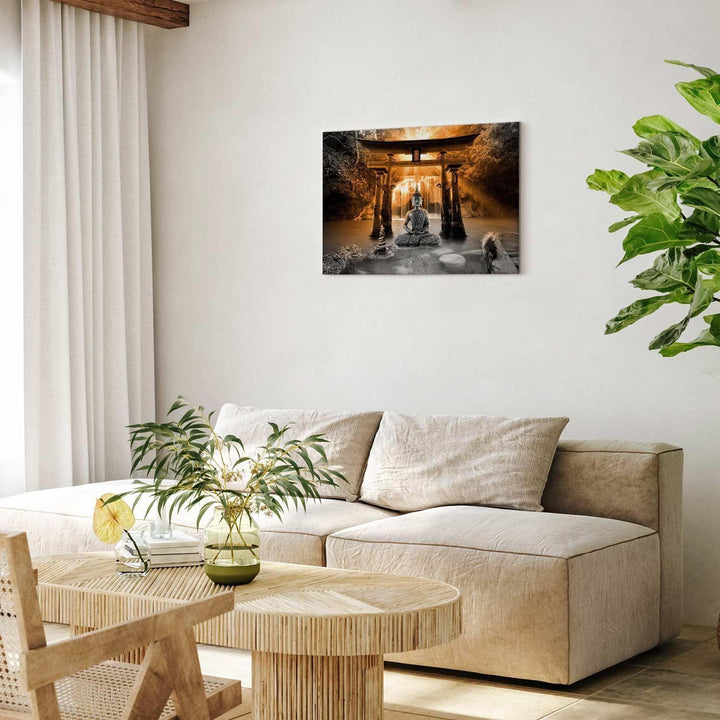 Canvas Print - Buddha Smile (1 Part) Wide Orange