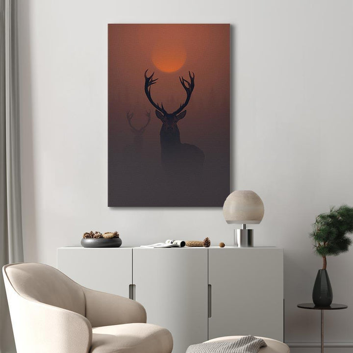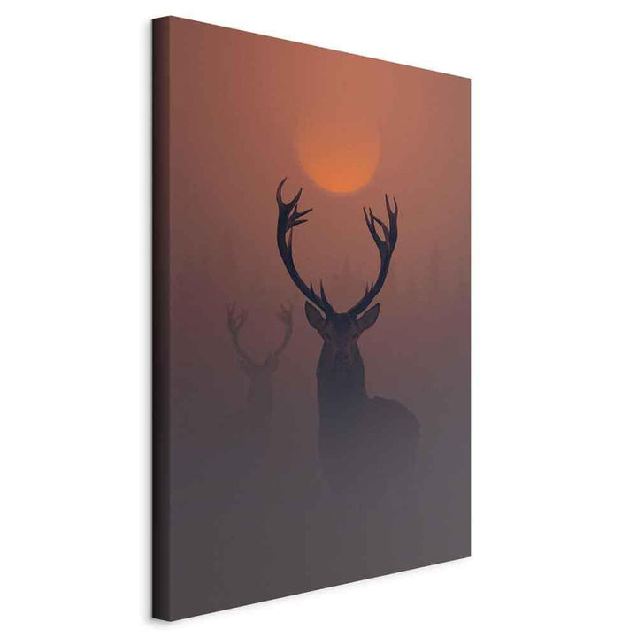 Canvas Print - Deers in the Fog (1 Part) Vertical