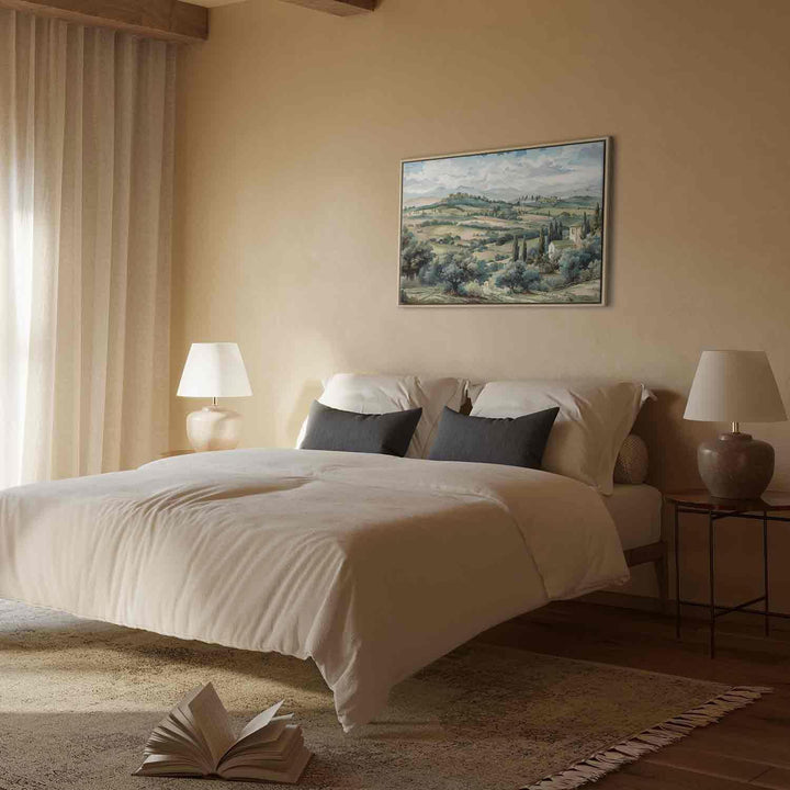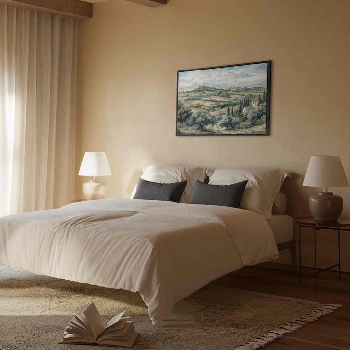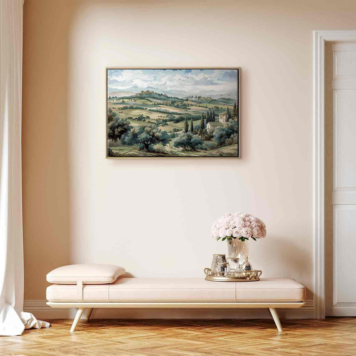 Canvas Print - Landscape with Green Fields and Trees Tuscan Sunny View