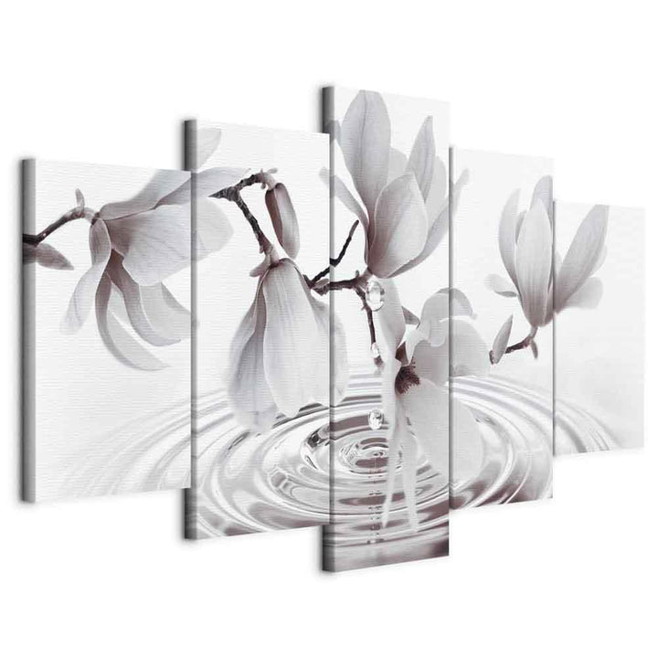Canvas Print - Magnolias over Water (5 Parts) Wide Grey