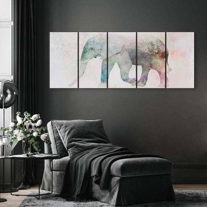 Canvas Print - Painted Elephant (5 Parts) Narrow