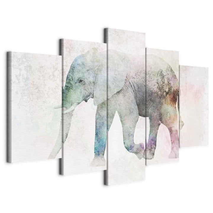 Canvas Print - Painted Elephant (5 Parts) Wide