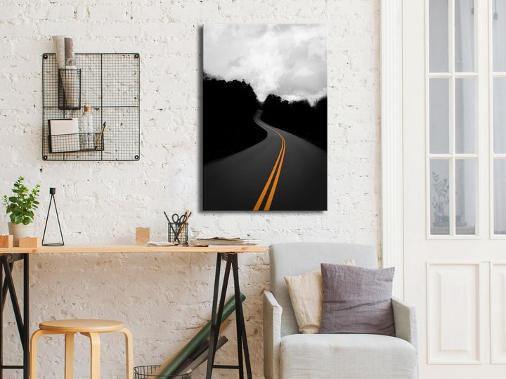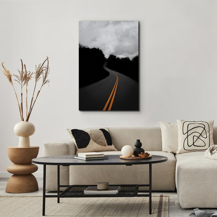 Canvas Print - Path Between Trees (1-part) - Black and White Skyline Landscape