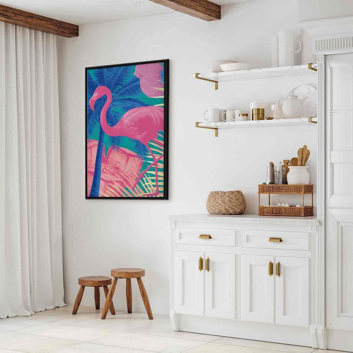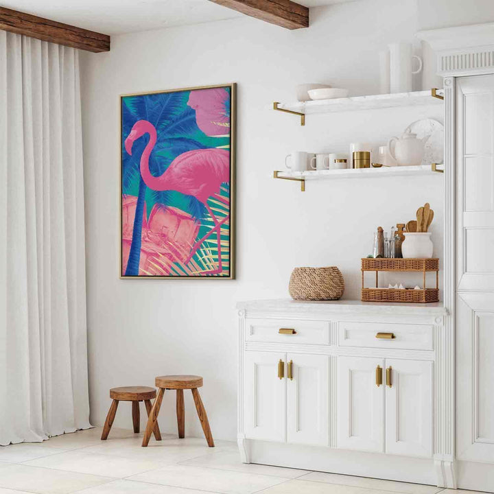 Canvas Print - Pink Flamingo - Abstract Flamingo Against Palms and Ice Cubes