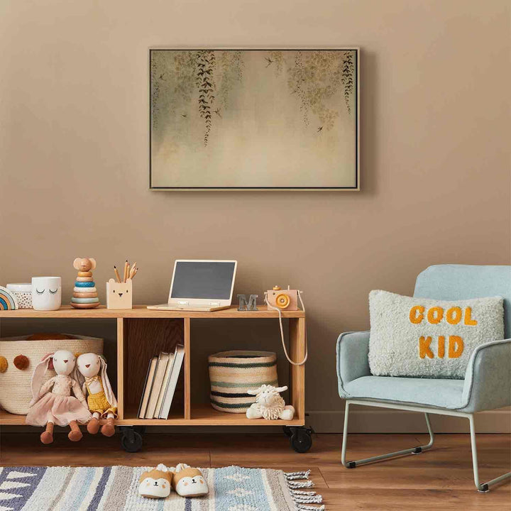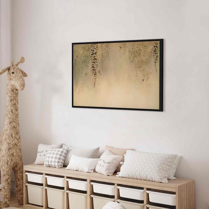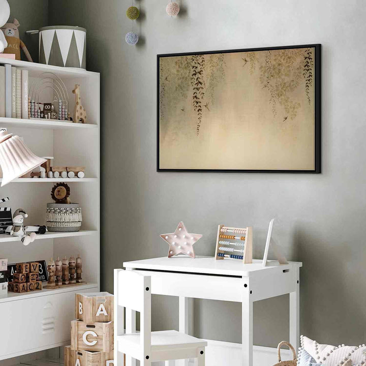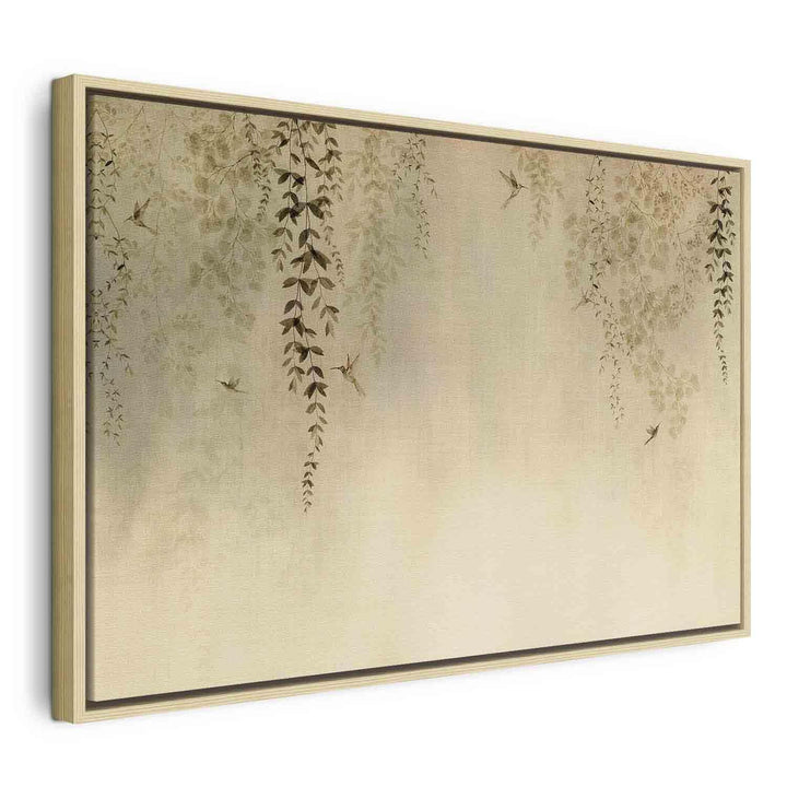 Canvas Print - Spring Orchard - Hummingbirds Among Tree Branches in Beige Shades