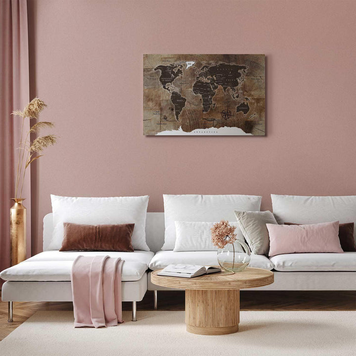 Canvas Print - World Map: Wooden Mosaic
