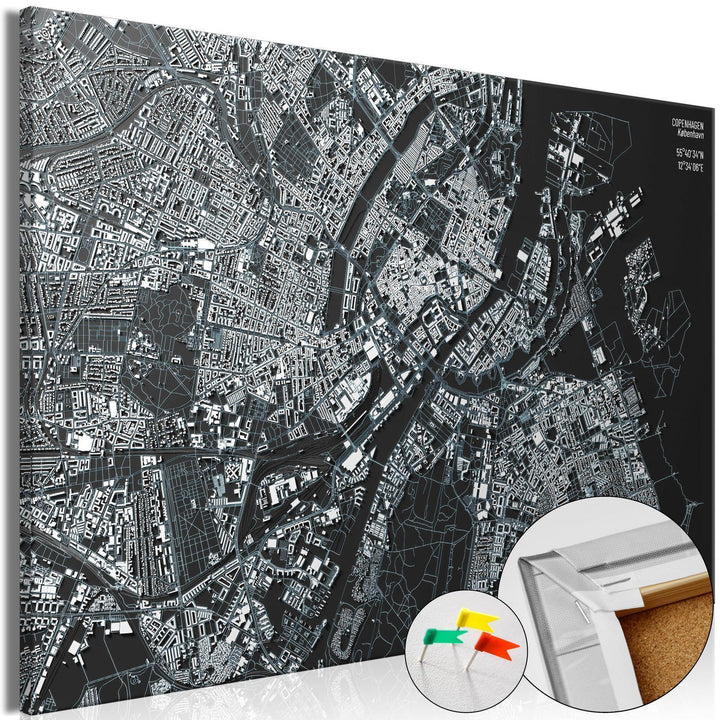 Decorative pinboard "Decorative Pinboard - Close up of Copenhagen" is a product for people searching for original wall decorations. Thanks to ecological material and interesting design, the ordinary cork board changes into a stylish decoration, which you could use in different ways. You can pin your notes and photos and mark the visited places on the map. Decorative pinboard "Decorative Pinboard - Close up of Copenhagen" is much lighter from the traditional wall decorations. Thanks to that the decorative cork boards can be hung anywhere in your apartment or office. The canvas print is applied on the cork board. Print is characterized by bold colors and reflects even the finest details. Stick in and pin your notes and create your own individual design on your wall! The cork map is an excellent gift idea for travel lovers!