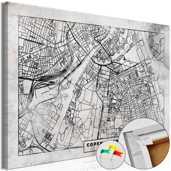Decorative pinboard "Decorative Pinboard - Copenhagen Plan" is a product for people searching for original wall decorations. Thanks to ecological material and interesting design, the ordinary cork board changes into a stylish decoration, which you could use in different ways. You can pin your notes and photos and mark the visited places on the map. Decorative pinboard "Decorative Pinboard - Copenhagen Plan" is much lighter from the traditional wall decorations. Thanks to that the decorative cork boards can be hung anywhere in your apartment or office. The canvas print is applied on the cork board. Print is characterized by bold colors and reflects even the finest details. Stick in and pin your notes and create your own individual design on your wall! The cork map is an excellent gift idea for travel lovers!