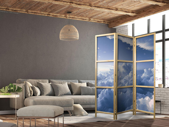 Japanese Room Divider - Aerial Landscapes: Rays Illuminating Fluffy Cloud Formations