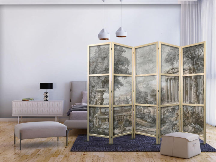 Japanese Room Divider - Antique Landscape - Greek Temple on a Hill Among Lush Vegetation