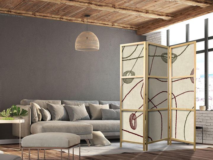 Japanese Room Divider - Bead Labyrinth - Minimalist Abstraction on a Worn Background