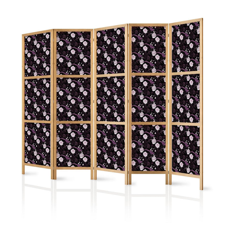 Japanese Room Divider - Birds Among Flowers - Pheasants Surrounding Peonies - Purple