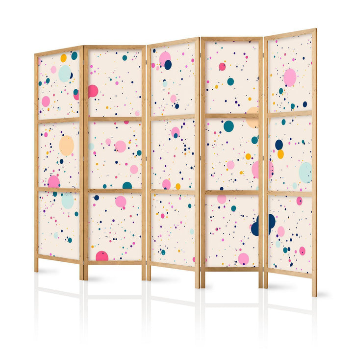 Japanese Room Divider - Dots - Spots and Splashes Multicolored - Cheerful Pattern on a Light Pink Background