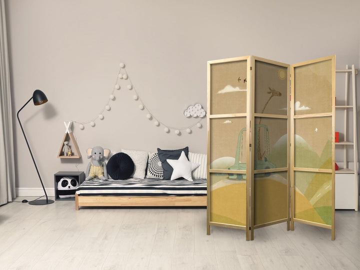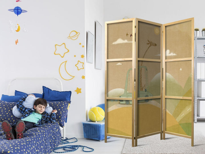 Japanese Room Divider - Dreamy Traveler - Giraffe driving a car on a beautiful sunny day