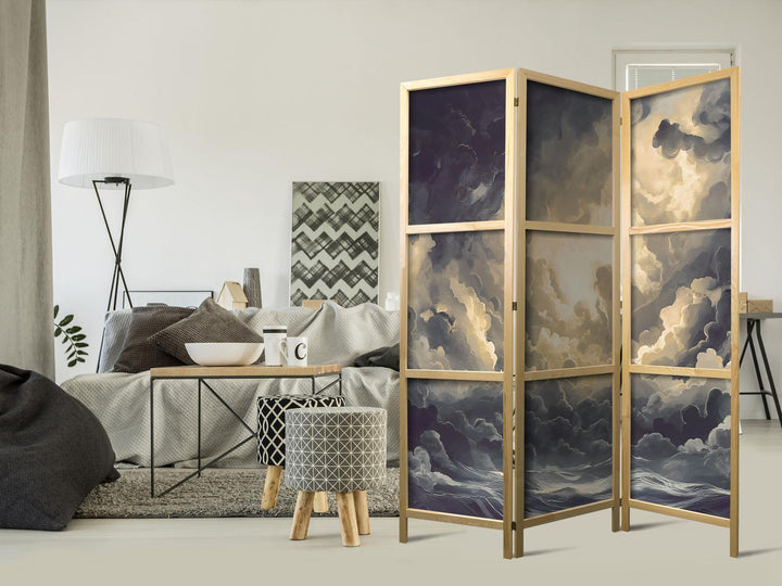 Japanese Room Divider - Epic Light Play: The Sun Battling for Dominance Over the Clouds