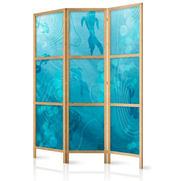 Japanese Room Divider - Koi Fish Under the Water Surface - a Cluster of Japanese Fish in the Depths of the Pond in Shades of Navy and Blue