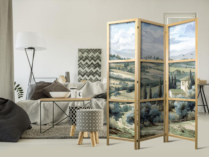 Japanese Room Divider - Landscape with Green Fields and Trees - Tuscan sunny view