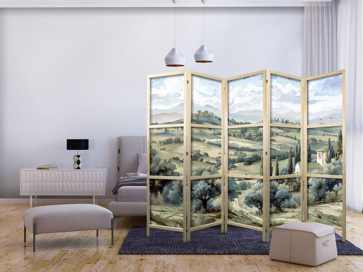 Japanese Room Divider - Landscape with Green Fields and Trees - Tuscan sunny view