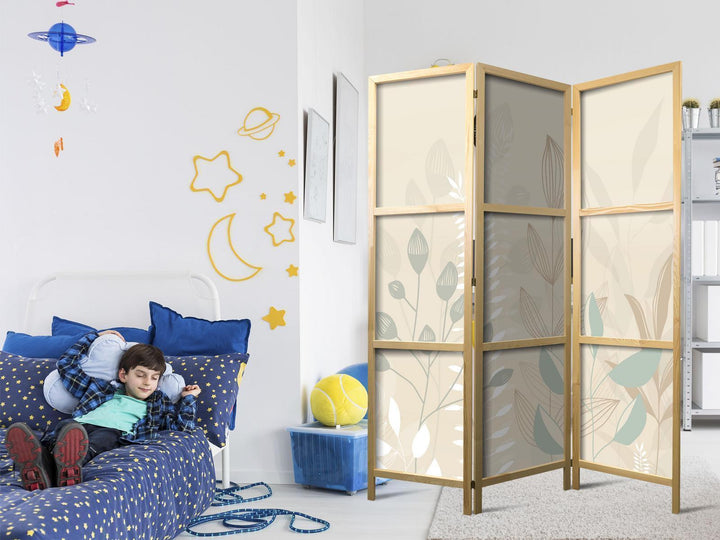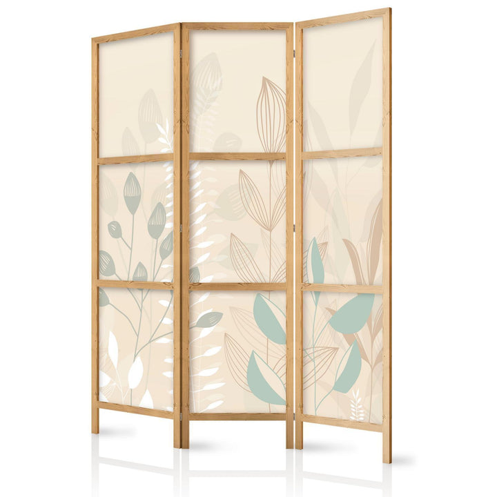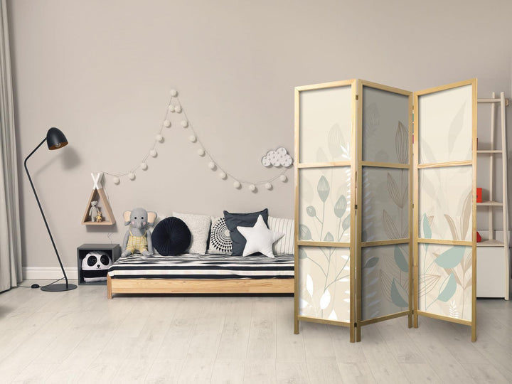 Japanese Room Divider - Morning in the Meadow - Various pastel plants on a beige background