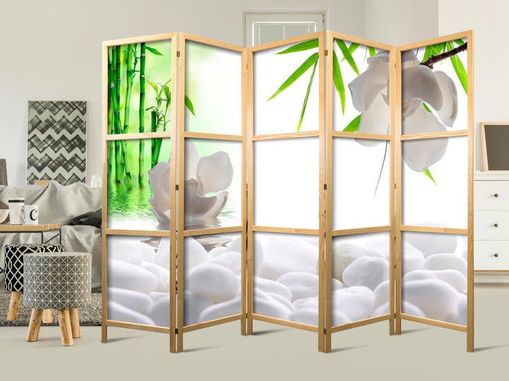 A beautiful, exotic Japanese screen divider with a unique motif and original pattern is not an element of design that cannot be easily matched with the most fashionable trends. Such a decoration can really spice up any decor. Oriental room dividers can introduce a breath of fresh air to typical designs and make them stand out from the styles of your friends and family. Such a practical decoration is suitable for every interior, no matter its size. A folding Japanese screen is exactly what you might need in a small interior, as you can choose it in a three- or five-part version. Once you get bored with the design, you can move it around or fold it and store it anywhere. You don't have to worry that your folding Japanese screen gets broken in time, as it's strengthened with a wooden frame and metal hinges that allow you to fold and move the screen as many times as you want.