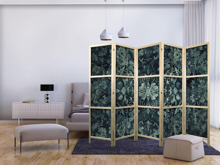 Japanese Room Divider - Oriental Pattern Carpet - Emerald Ornaments and Worn Patterns