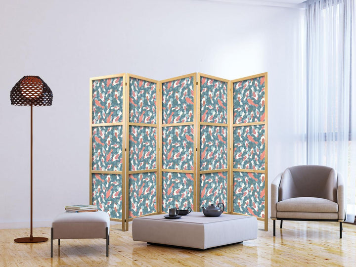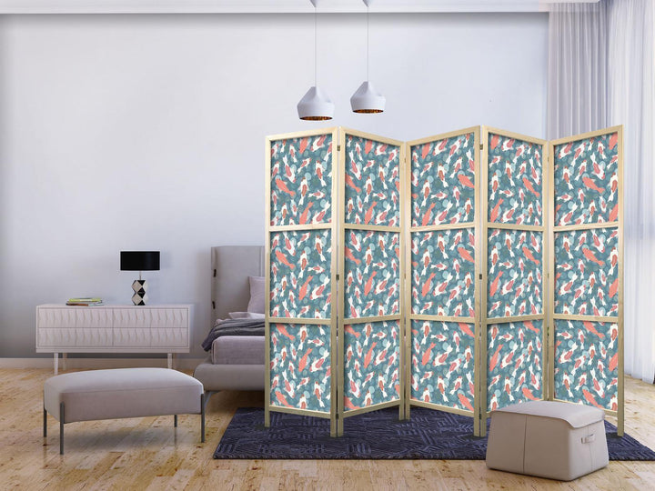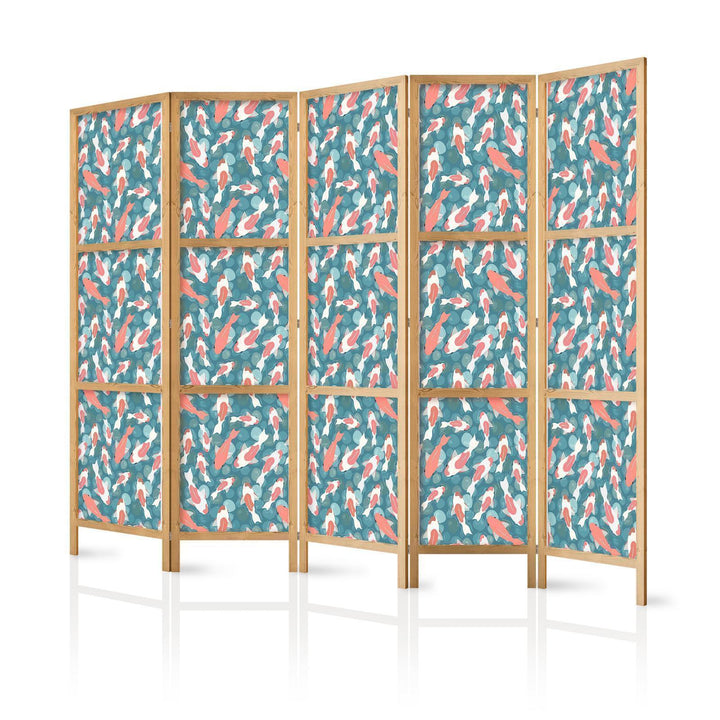 Japanese Room Divider - Oriental Pond - a Cluster of Japanese Fish Swimming in Crystal Clear Water with Flashes of Light
