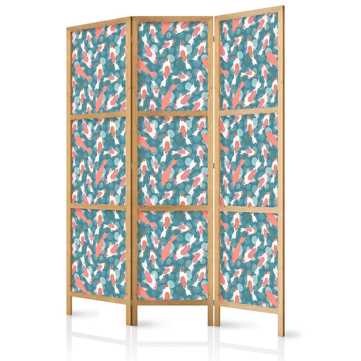 Japanese Room Divider - Oriental Pond - a Cluster of Japanese Fish Swimming in Crystal Clear Water with Flashes of Light