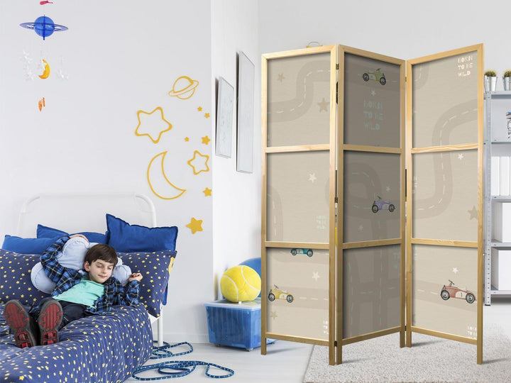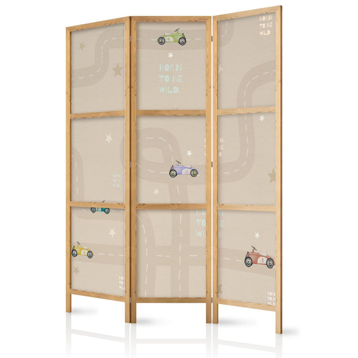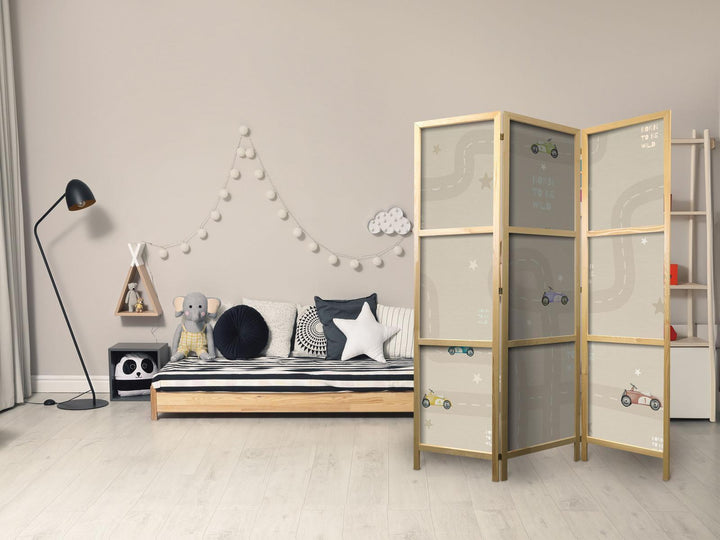 Japanese Room Divider - Race - Colorful cars on a road on a beige background with stars