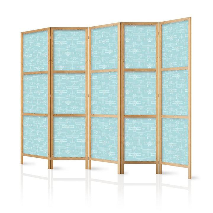 Japanese Room Divider - Sketch - Outline of an Airplane in White on a Turquoise Background