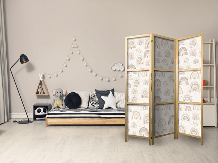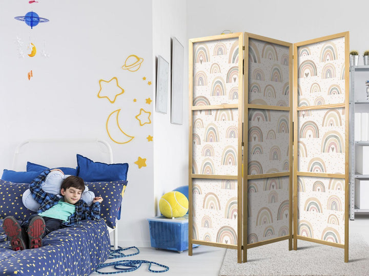 Japanese Room Divider - Spring - Pastel Rainbows on a Rainy Day with Hearts