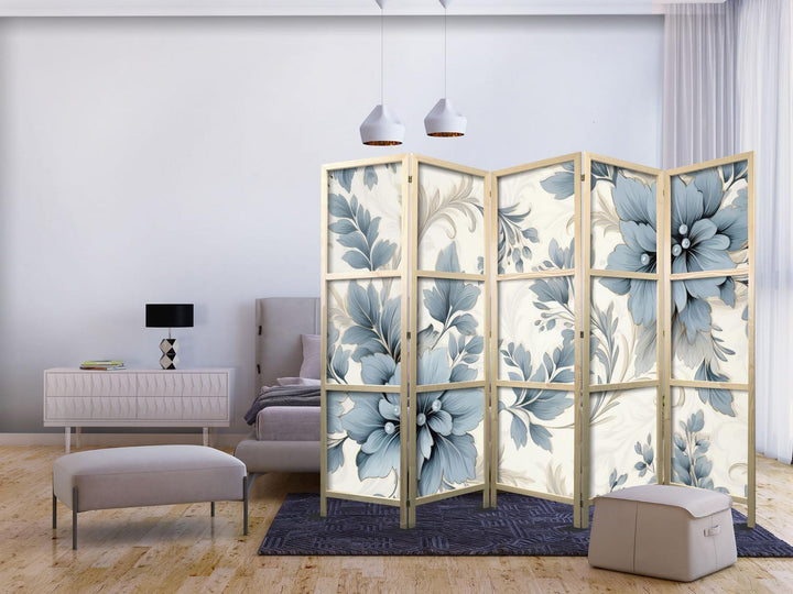 Japanese Room Divider - Turquoise Flowers in Retro Ambiance - Floral Ornaments