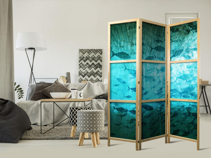 Japanese Room Divider - Underwater Paradise - Numerous Schools of Fish in a Beautiful Turquoise-Blue Depth Illuminated by the Sunlight