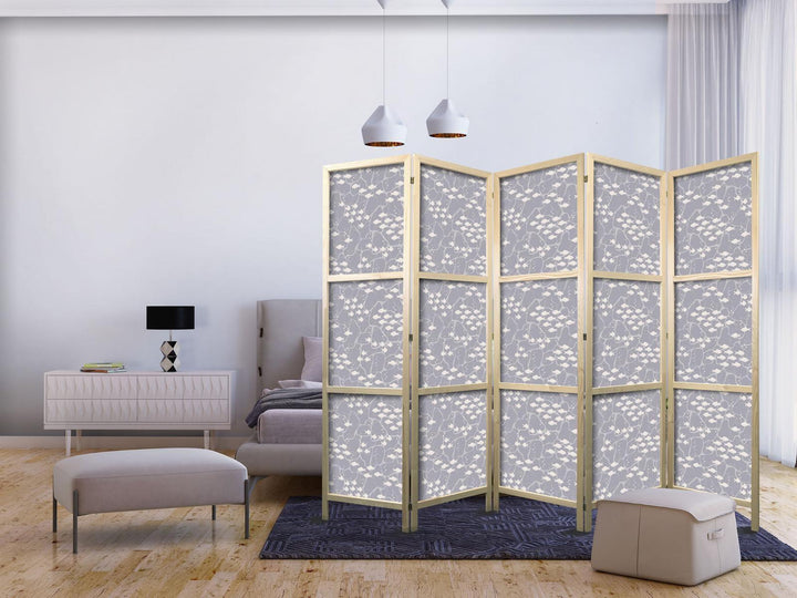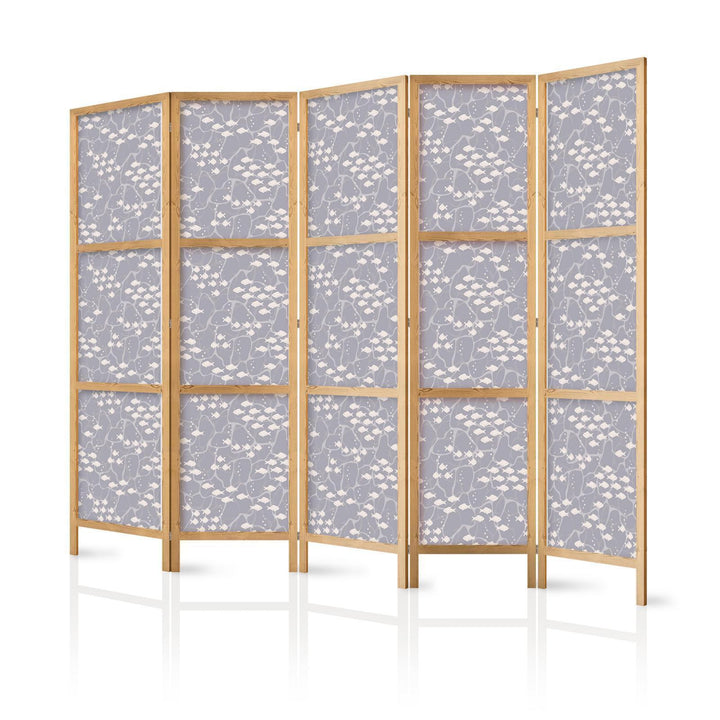 Japanese Room Divider - Underwater Shoal of Small Fish - Tiny Light-Beige Fish on the Background of Oceanic Depths in Gray Shades