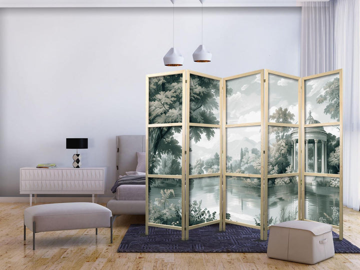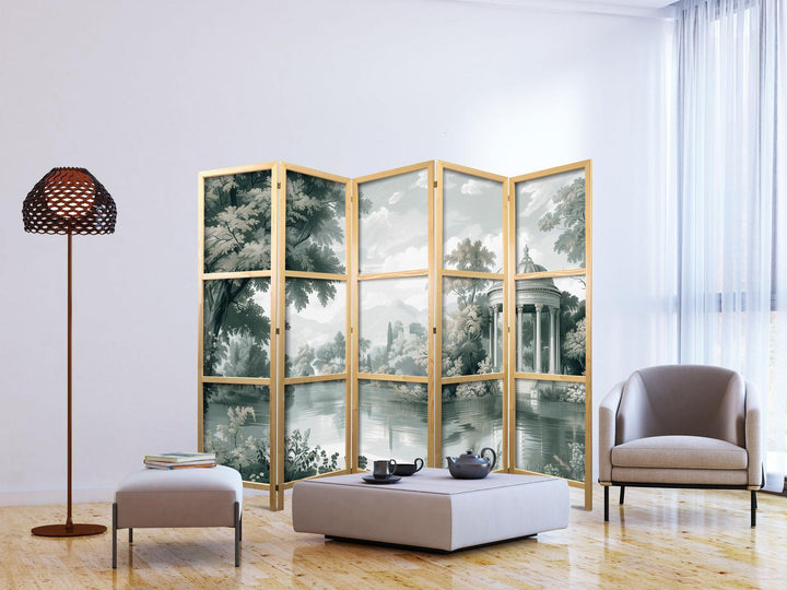 Japanese Room Divider - View of the Park and Lake - Retro Vintage Landscape in Greens