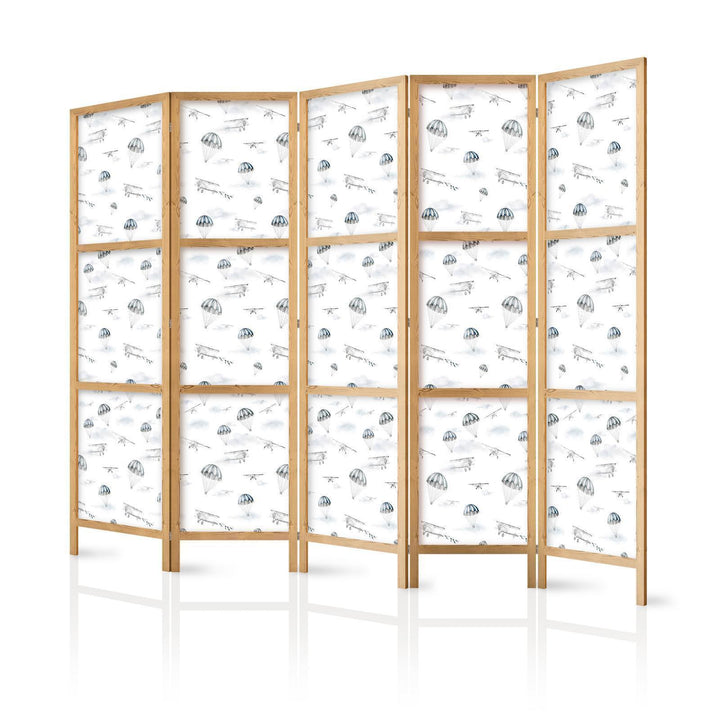 Japanese Room Divider - Watercolor - Airplane Show on a Bright Sky with Delicate Clouds