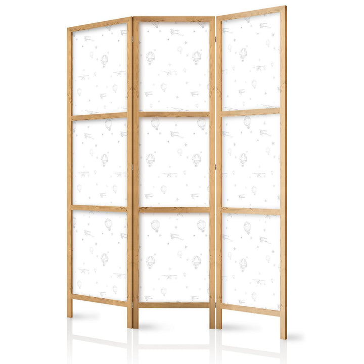 Japanese Room Divider - Watercolor - Airplanes and Balloons Painted on a White Sky Background