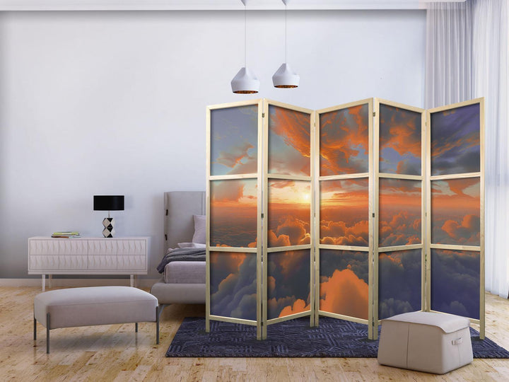 Japanese Room Divider - When Dawn Tickles the Clouds: A Spectacle of Colors on the Morning Sky