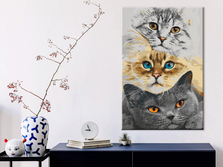 Do you want to relax in a creative way? Looking for an original adventure, where you could also invite your loved ones? At the same time awake your creativity and feel like a real artist. Nothing's easier ! Discover the most original hobby of this year - painting by numbers. A colorful painting kit by numbers "Paint By Numbers Kit - Cat's Trio" is an unusual idea for spending free time. Painting kit by numbers "Paint By Numbers Kit - Cat's Trio" is an activity for people of all ages. Perfect for amateur painters! This painting will be perfect as a wall decoration.
