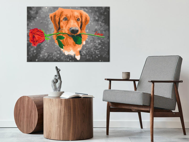 Do you want to relax in a creative way? Looking for an original adventure, where you could also invite your loved ones? At the same time awake your creativity and feel like a real artist. Nothing's easier ! Discover the most original hobby of this year - painting by numbers. A colorful painting kit by numbers "Paint By Numbers Kit - Dog With Rose" is an unusual idea for spending free time. Painting kit by numbers "Paint By Numbers Kit - Dog With Rose" is an activity for people of all ages. Perfect for amateur painters! This painting will be perfect as a wall decoration.