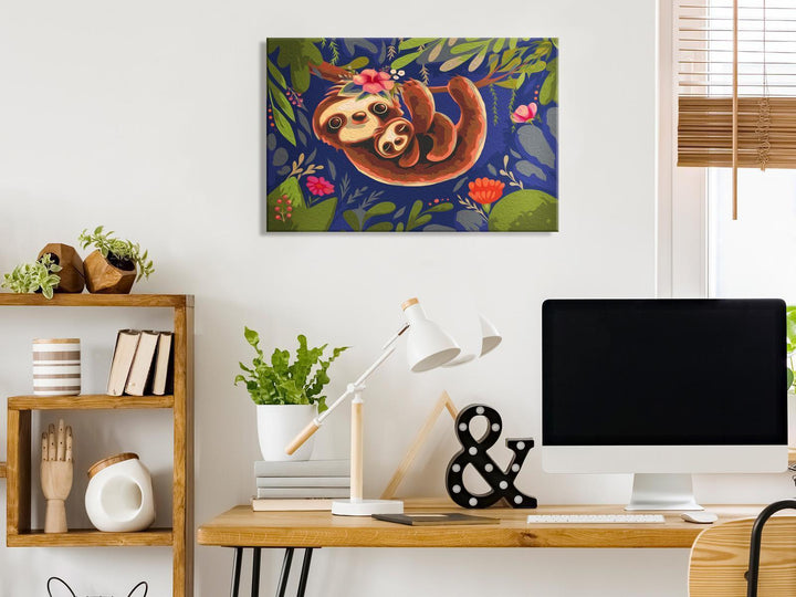 Do you want to relax in a creative way? Looking for an original adventure, where you could also invite your loved ones? At the same time awake your creativity and feel like a real artist. Nothing's easier ! Discover the most original hobby of this year - painting by numbers. A colorful painting kit by numbers "Paint By Numbers Kit - Friendly Sloths" is an unusual idea for spending free time. Painting kit by numbers "Paint By Numbers Kit - Friendly Sloths" is an activity for people of all ages. Perfect for amateur painters! This painting will be perfect as a wall decoration.