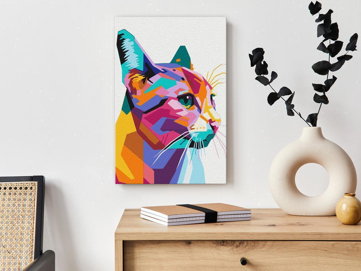 Do you want to relax in a creative way? Looking for an original adventure, where you could also invite your loved ones? At the same time awake your creativity and feel like a real artist. Nothing's easier ! Discover the most original hobby of this year - painting by numbers. A colorful painting kit by numbers "Paint By Numbers Kit - Geometric Cat" is an unusual idea for spending free time. Painting kit by numbers "Paint By Numbers Kit - Geometric Cat" is an activity for people of all ages. Perfect for amateur painters! This painting will be perfect as a wall decoration.