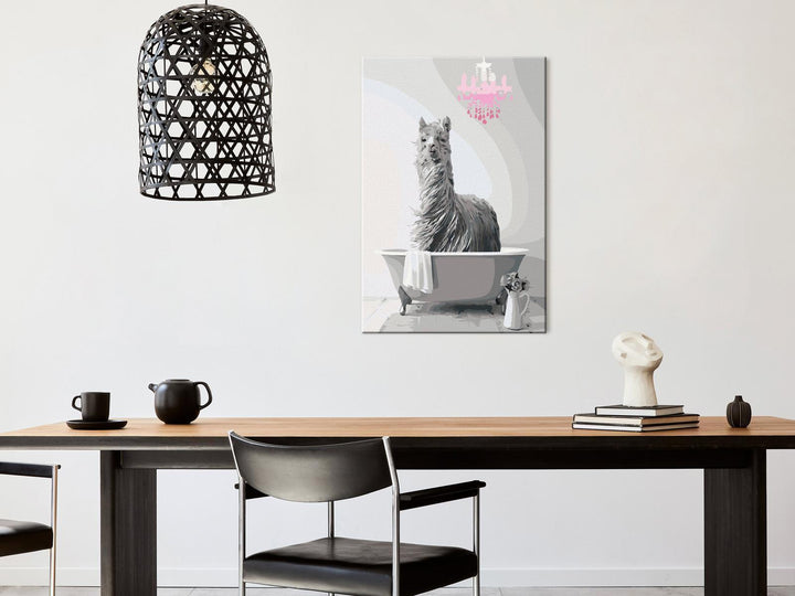 Do you want to relax in a creative way? Looking for an original adventure, where you could also invite your loved ones? At the same time awake your creativity and feel like a real artist. Nothing's easier ! Discover the most original hobby of this year - painting by numbers. A colorful painting kit by numbers "Paint By Numbers Kit - Lama in the Bathtub" is an unusual idea for spending free time. Painting kit by numbers "Paint By Numbers Kit - Lama in the Bathtub" is an activity for people of all ages. Perfect for amateur painters! This painting will be perfect as a wall decoration.