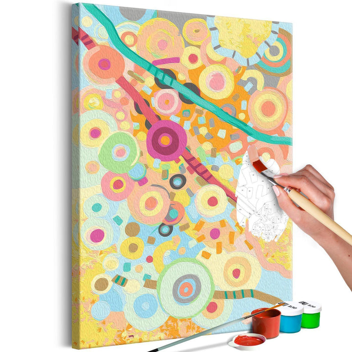 Do you want to relax in a creative way? Looking for an original adventure, where you could also invite your loved ones? At the same time awake your creativity and feel like a real artist. Nothing's easier ! Discover the most original hobby of this year - painting by numbers. A colorful painting kit by numbers "Paint By Numbers Kit - Rainbow Circles" is an unusual idea for spending free time. Painting kit by numbers "Paint By Numbers Kit - Rainbow Circles" is an activity for people of all ages. Perfect for amateur painters! This painting will be perfect as a wall decoration.
