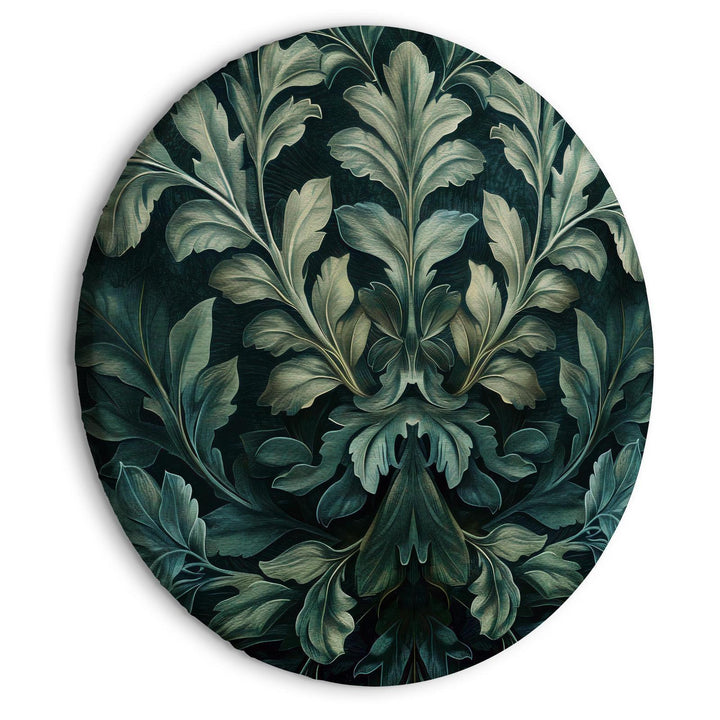 Round Canvas Print - Dark Green Victorian Leaves: Botanical Carved Composition