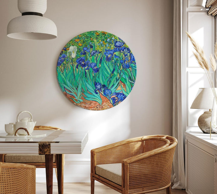 Round Canvas Print - Irises by Vincent Van Gogh - Blue Flowers in the Meadow