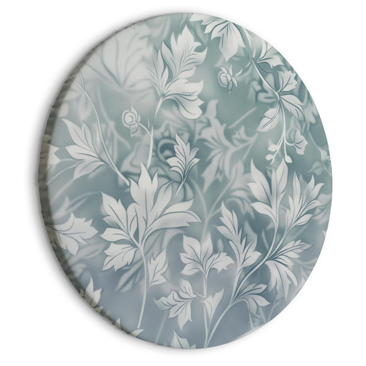 Round Canvas Print - Ornaments in Worn Muted Turquoises: Delicate Plant Pattern