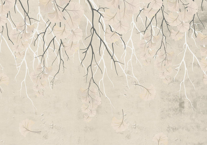 Wall Mural - Abstract falling leaves - subtle nature motif with branches