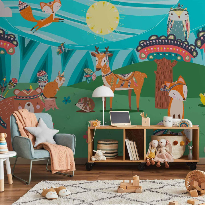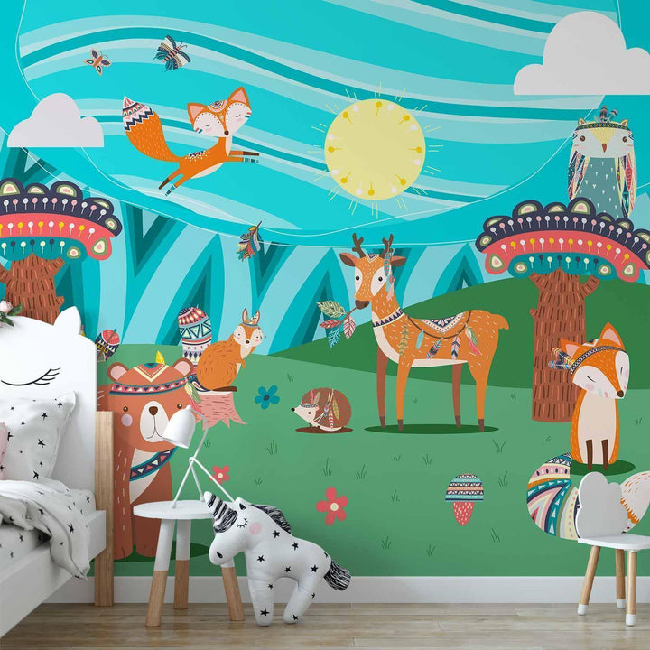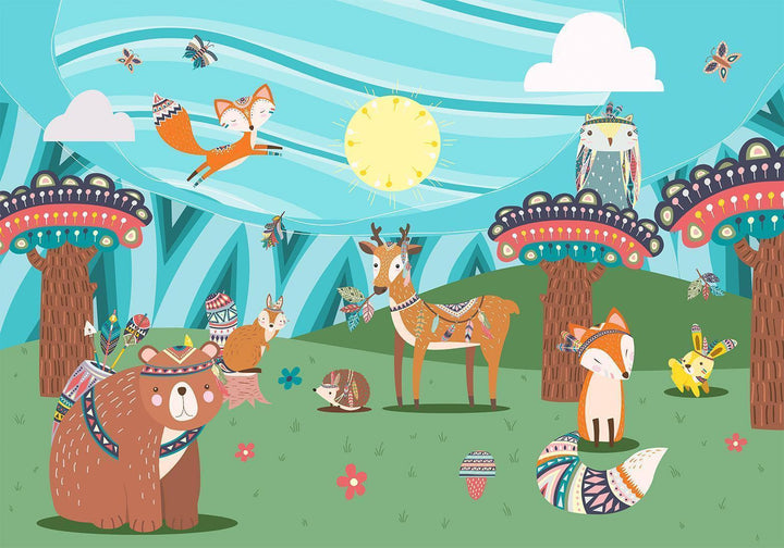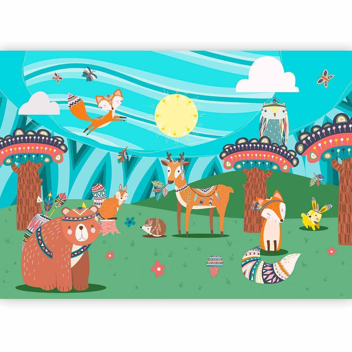 Wall Mural - Adventures in the forest - forest animals in an Indian theme for children