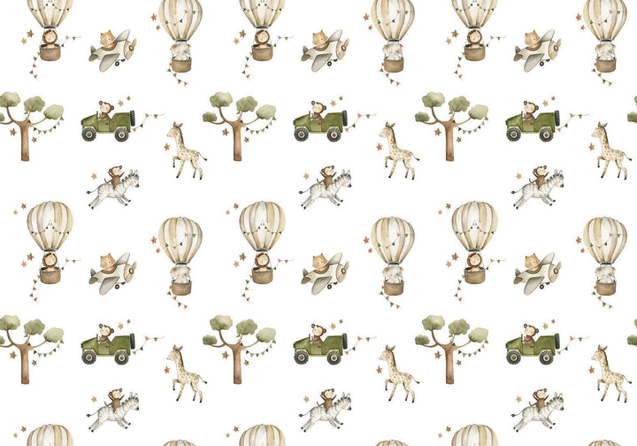 Wall Mural - Africa for Toddler - Animals on Savannah in Watercolour Technique